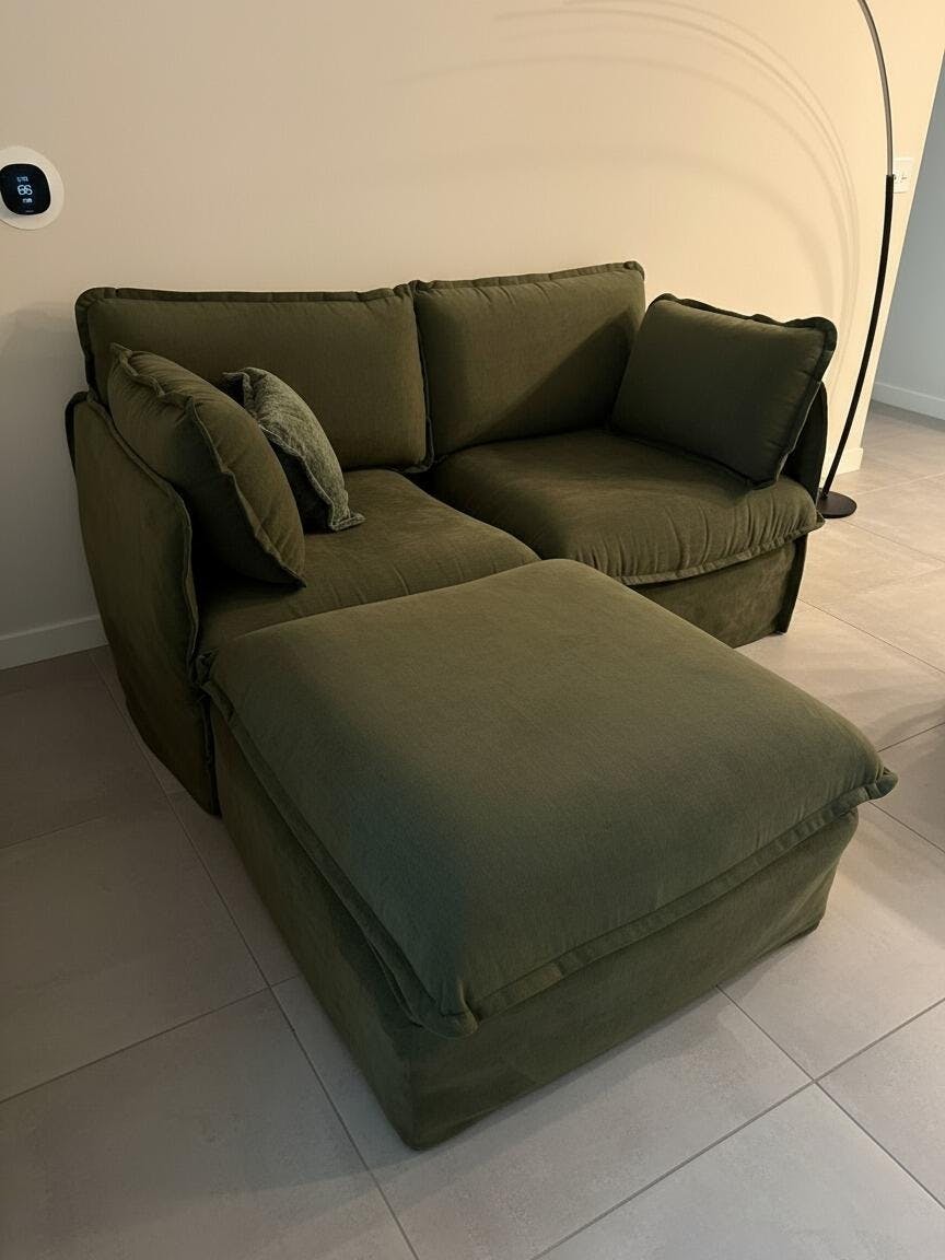 I started with the 4 seater, then added another module when family came to stay. It’s so easy to switch things around, I love it. Dog hair brushes off no problem and I’ve washed the covers twice already—still looks new.