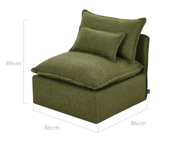 Armless Sofa: 86W x 86D x 89H (cm)