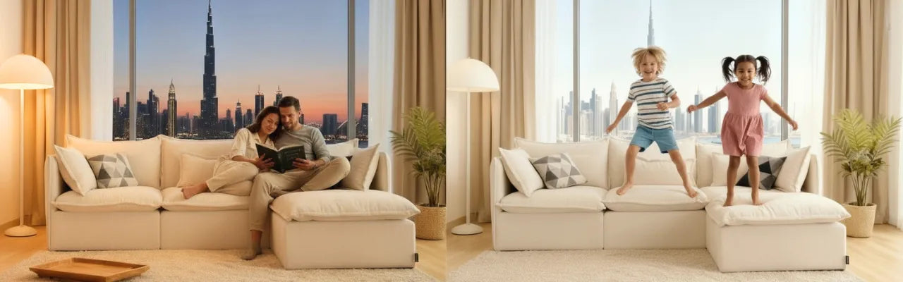 This sofa is unbelievably cozy. Perfect for my Dubai apartment. It strikes the ideal balance — neither overly firm nor overly soft — just right. I’m also a big fan of the removable slipcovers; they’re simple to take off and put back on, and washing them is no hassle at all. Absolutely recommend, 10 out of 10 for a big fam.